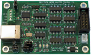 The Precision Laser On/Off Controller is user programmable via USB, RS-232 or optional SPI interface. It can signal your laser via a TTL, Open collector or Opto isolated I/O line.